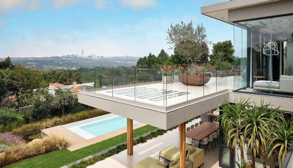 Perched on the ridge in Sandton's most desired location, this award-winning home (approx. 1 000sqm under roof) boasts astounding views over the Sandton skyline on an acre of indigenous, landscaped gardens.